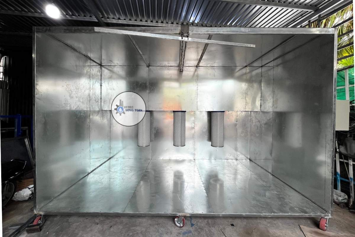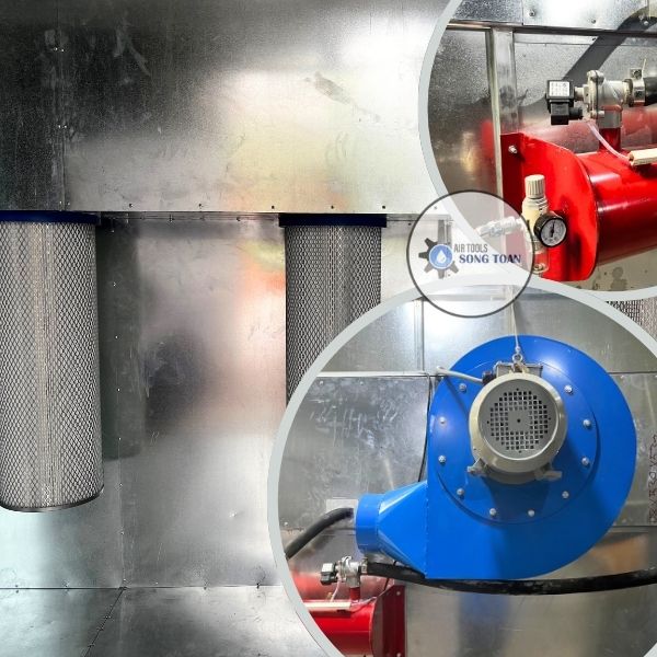 Một trong những yếu tố then chốt quyết định hiệu quả của buồng phun chính là hệ thống quạt hút và thu hồi bột sơn.