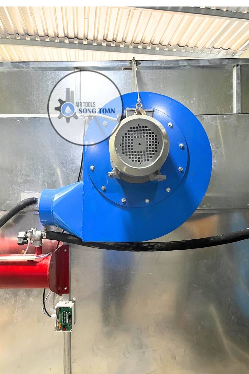 Với khả năng tạo áp suất hút lớn, quạt giúp hút sạch lượng bột sơn dư sinh ra trong quá trình phun, giữ cho không khí bên trong buồng luôn thoáng sạch, đồng thời hạn chế ô nhiễm môi trường và giảm thiểu nguy cơ cháy nổ do bụi sơn tích tụ.