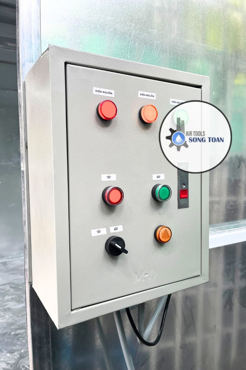 - Tủ điều khiển được thiết kế khoa học, bố trí nút chức năng rõ ràng, đảm bảo dễ thao tác và an toàn tuyệt đối. Thiết bị tuân thủ tiêu chuẩn an toàn điện công nghiệp, giúp người vận hành yên tâm sử dụng.