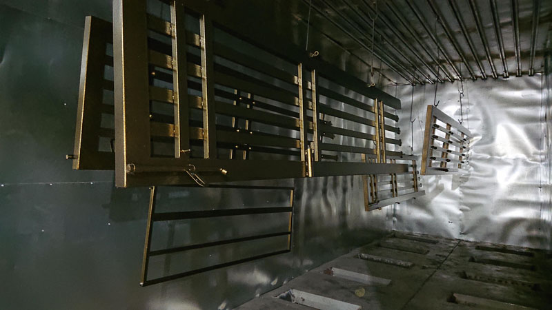 Sản phẩm được treo trong lò sấy sơn tĩnh điện