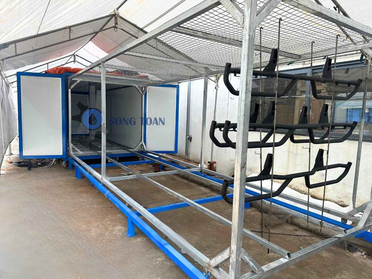 - Phù hợp cho sản phẩm có kích thước lớn: Các sản phẩm như khung cửa, lan can, giường sắt, bàn làm việc khổ lớn... đều có thể dễ dàng đặt vào lò mà không cần cắt ghép. Không gian bên trong lò đủ rộng để sấy đồng thời nhiều sản phẩm cùng lúc.