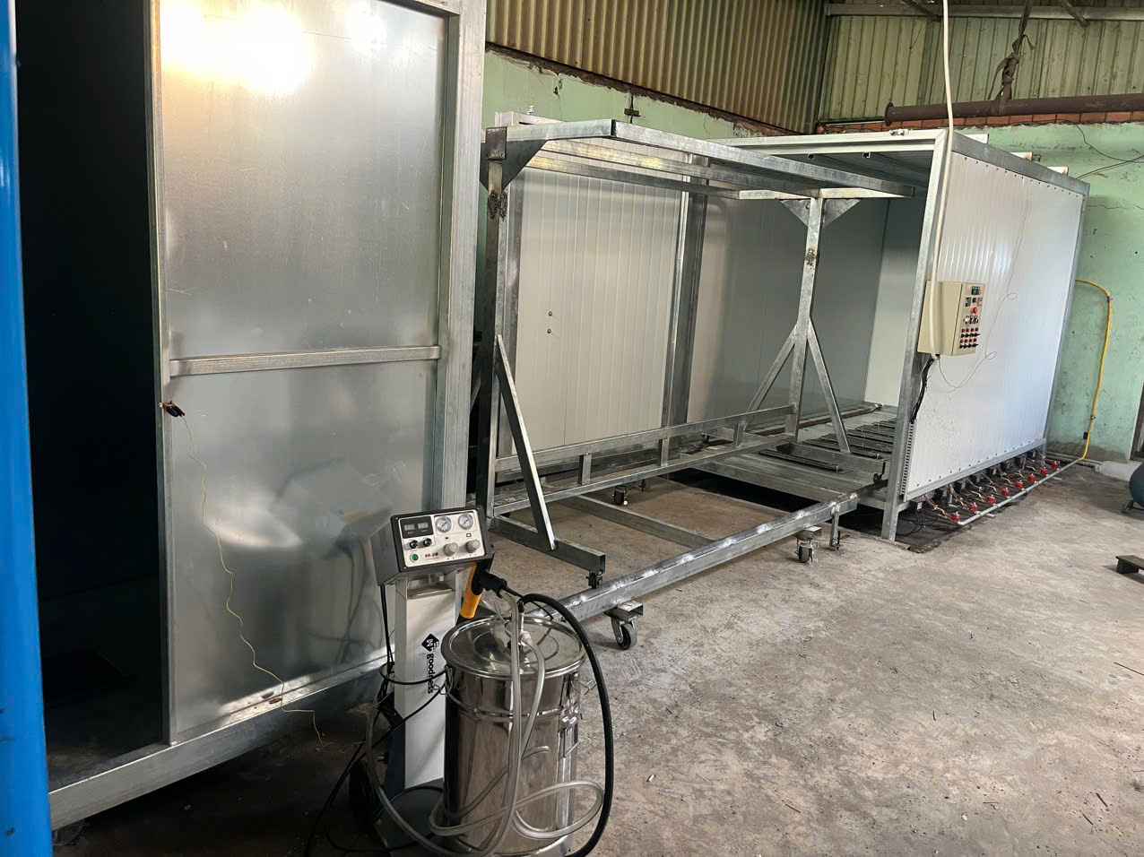 Lò sấy sơn tĩnh điện có trang bị thanh trượt và giàn treo