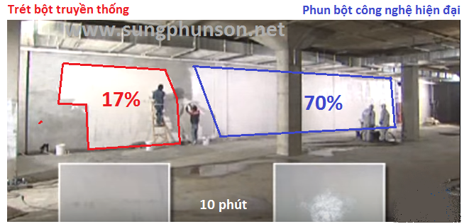 - Giúp bề mặt phun bột matit lên tường nhanh hơn và đều min hơn so với dùng bằng tay