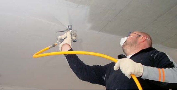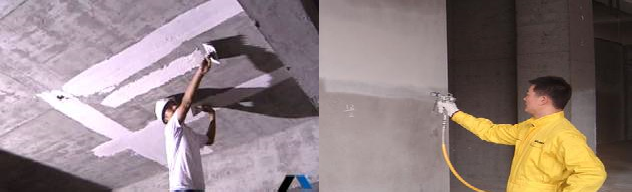 - Thay vì trét bột matit lên tường theo kiểu truyền thống thì máy phun bột trét chỉ cần 1 thao tác là dùng vòi súng phun bột trét lên tường