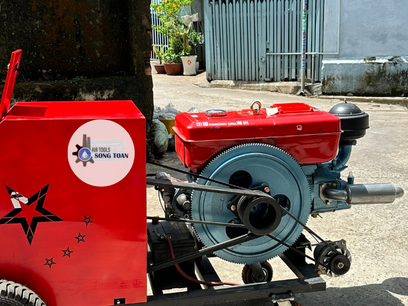 Trọn bộ máy phun vữa trát trát tường dùng động cơ chạy dầu diesel bao gồm: