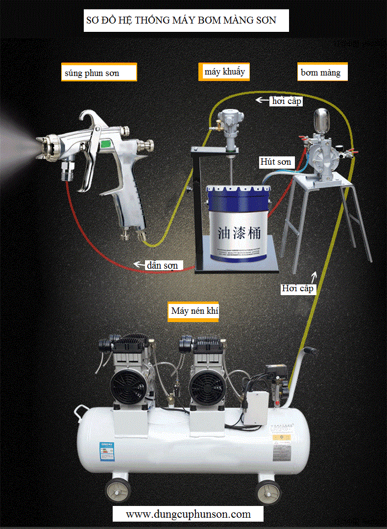SƠ ĐỒ HỆ THỐNG PHUN SƠN SỬ DỤNG MÁY BƠM MÀNG SƠN