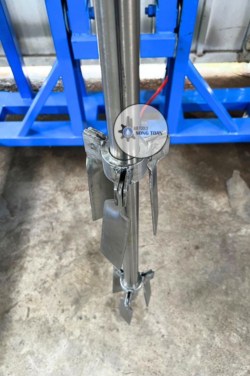 - Chất liệu inox 304: Trục và cánh khuấy đều được làm từ chất liệu Inox 304, giúp thiết bị không bị ăn mòn trong môi trường có hóa chất mạnh, đồng thời đảm bảo an toàn vệ sinh cho các sản phẩm cần khuấy.