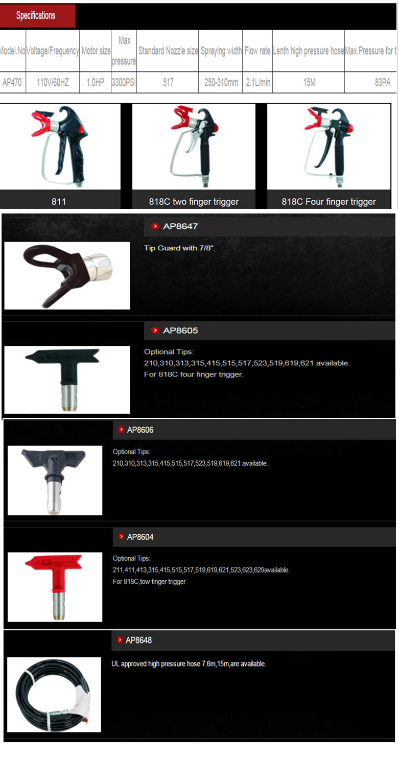 Để biết thêm chi tiết máy phun sơn nước tường nhà Aeropro R450 bạn có thể xem cho tiết thông số kĩ thuật của máy sau :