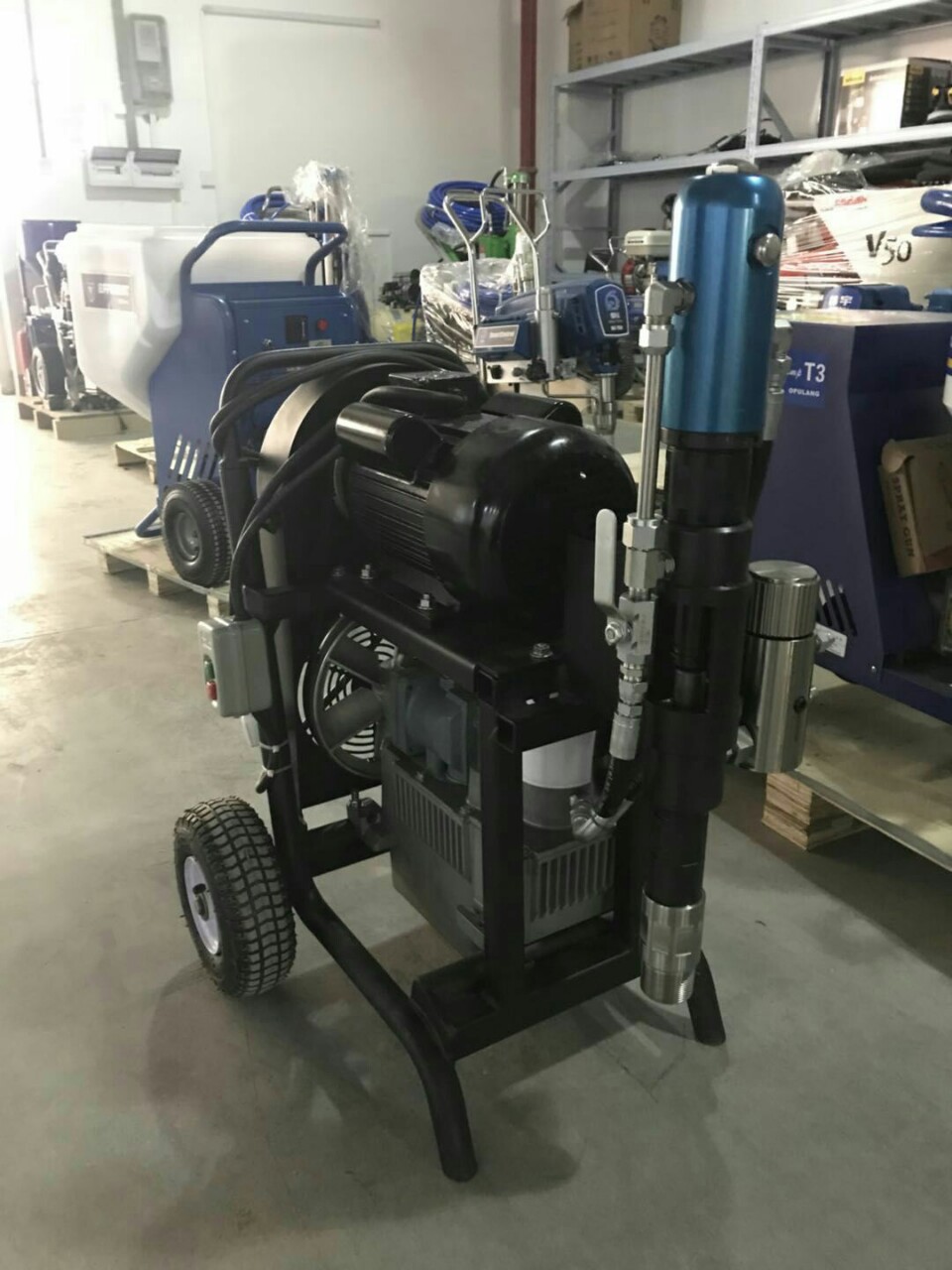 Đây có thể được xem là siêu phẩm trong các dòng máy phun bột ,và so với các dòng sản phẩm máy phun bột bả giá rẻ vì ngoài những tính năng mạnh mẽ ,tích hợp hệ thống khuấy bột trên thân máy ,động cơ máy dạng piston thủy lưc nên máy có thể phun ra áp cực mạnh và phun được bột trét đặc như bột trét tay
