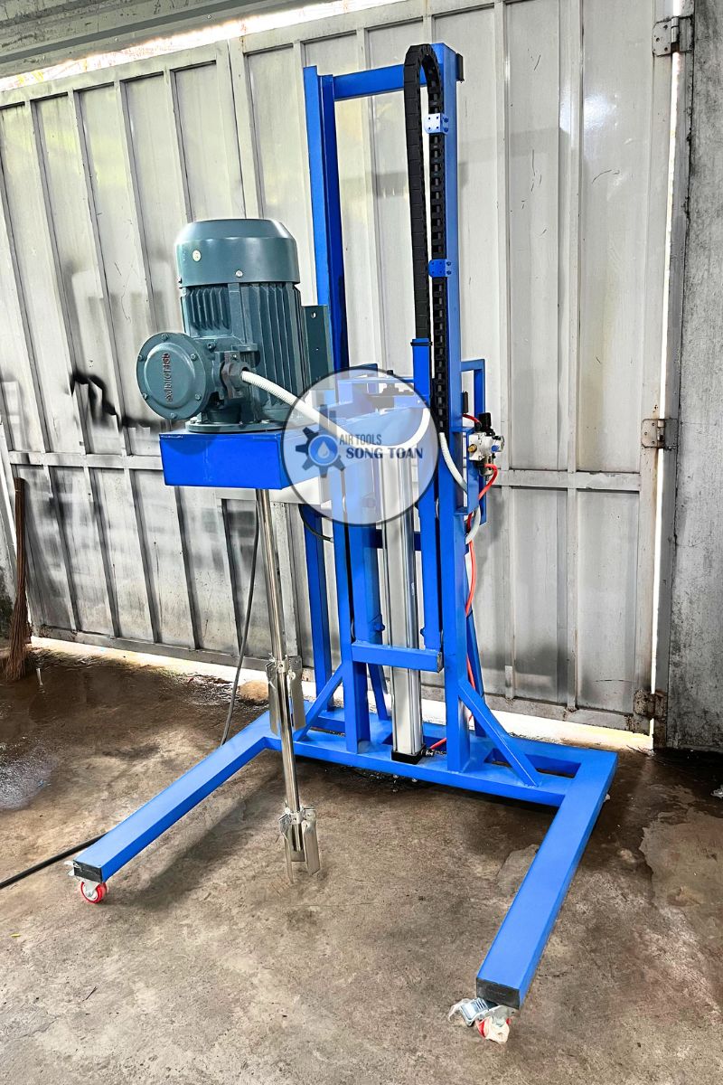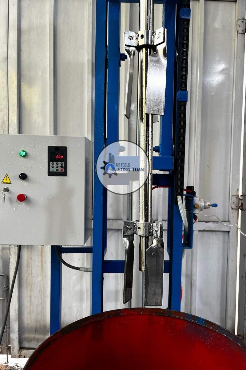 - Cấu tạo chắc chắn: Bao gồm động cơ (điện hoặc khí nén), trục truyền động và cánh khuấy – thường được chế tạo bằng thép không gỉ hoặc vật liệu chịu ăn mòn, tùy theo đặc tính nguyên liệu.
